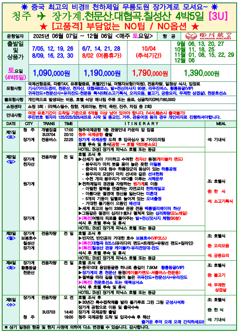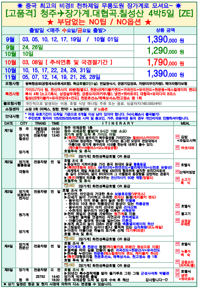 #2.청주공항출발 장가계 4박5일 이스타항공