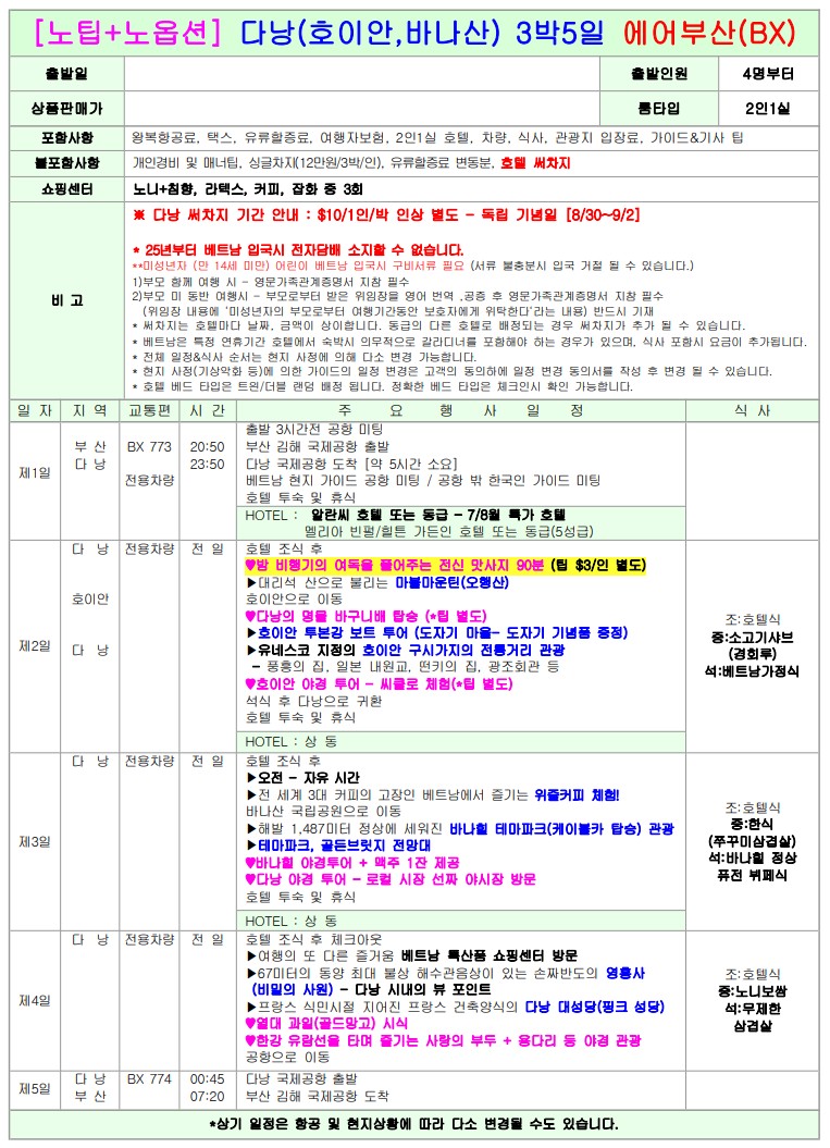 #2.[노팁+노옵션] 다낭(호이안,바나산) 3박5일 에어부산(BX)