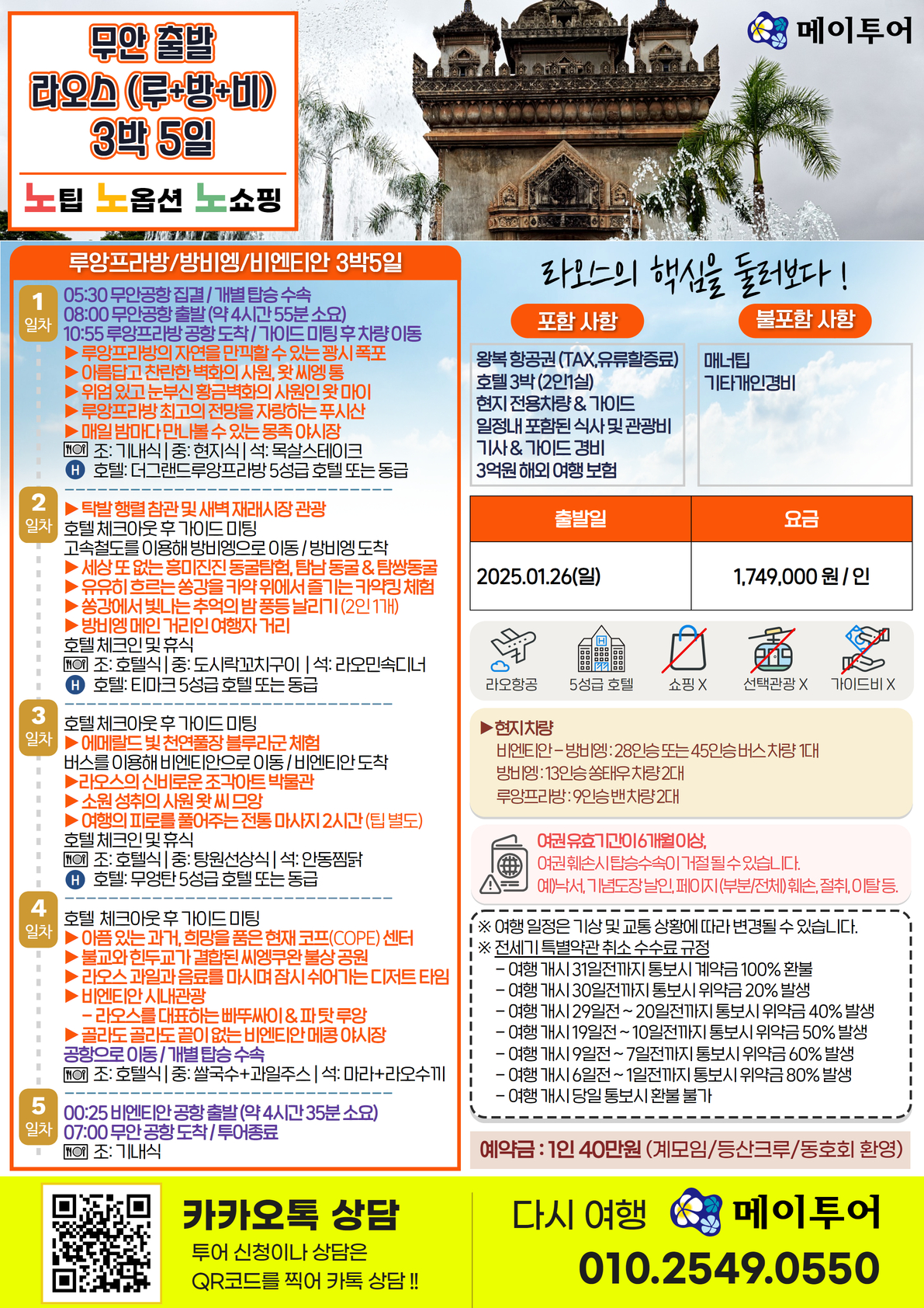 고객명 : 나○주 , 출발일 : 2025-01-26 , 출발지 : 무안공항 , 여행지 : 라오스